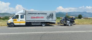 - The motorcycle is transported using a vehicle specifically adapted for this type of transport.